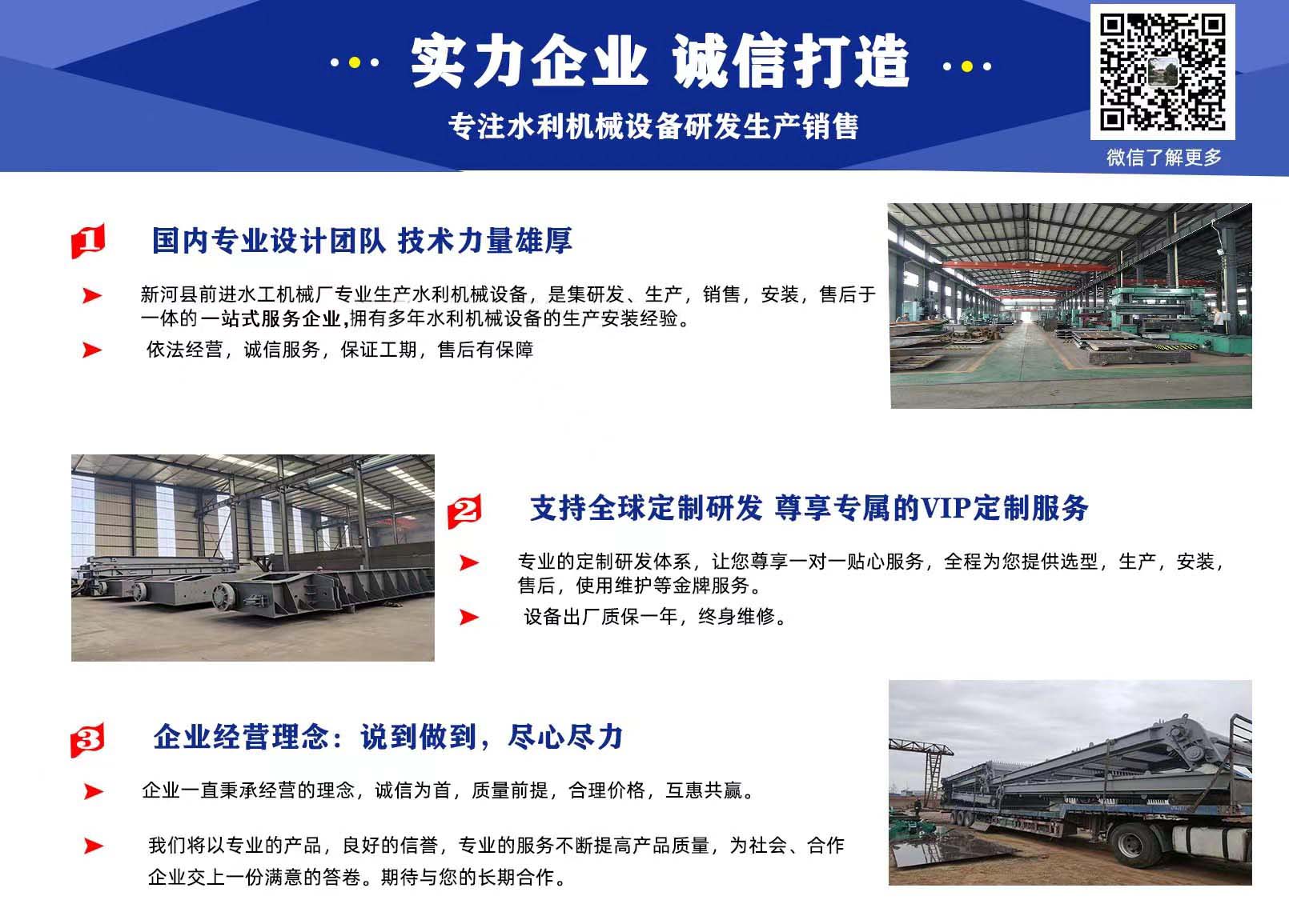 前進(jìn)水工優(yōu)勢(shì):具有專(zhuān)業(yè)研發(fā)團(tuán)隊(duì),精湛的制造工藝,嚴(yán)謹(jǐn)?shù)臋z驗(yàn)技術(shù),完善的售后服務(wù)